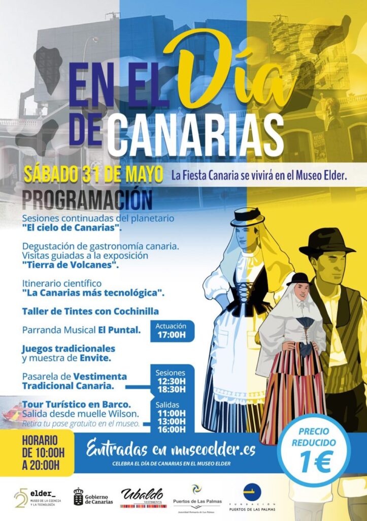 La fiesta canaria también se vivirá en el Museo Elder, en horario de 10:00h a 20:00h, donde hay programadas degustaciones de gastronomía canaria, visitas guiadas a la exposición ‘Tierra de Volcanes’, talleres de tintes con cochinilla, juegos tradicionales y muestra de ‘Envite’, sesiones continuadas del planetario ‘El cielo de Canarias’ y el itinerario científico ‘La Canarias más tecnológica’.
