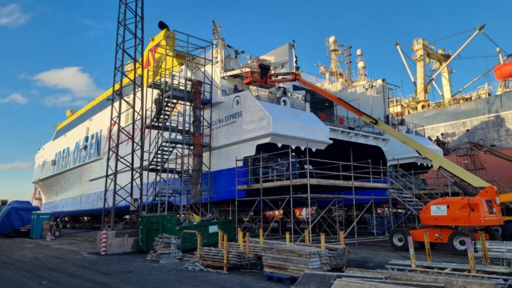 Colaborando estrechamente con la naviera Fred. Olsen Express, Astican ha realizado un proyecto pionero al calcular la huella de carbono en la varada reglamentaria del catamarán Bocayna Express en nuestras instalaciones.