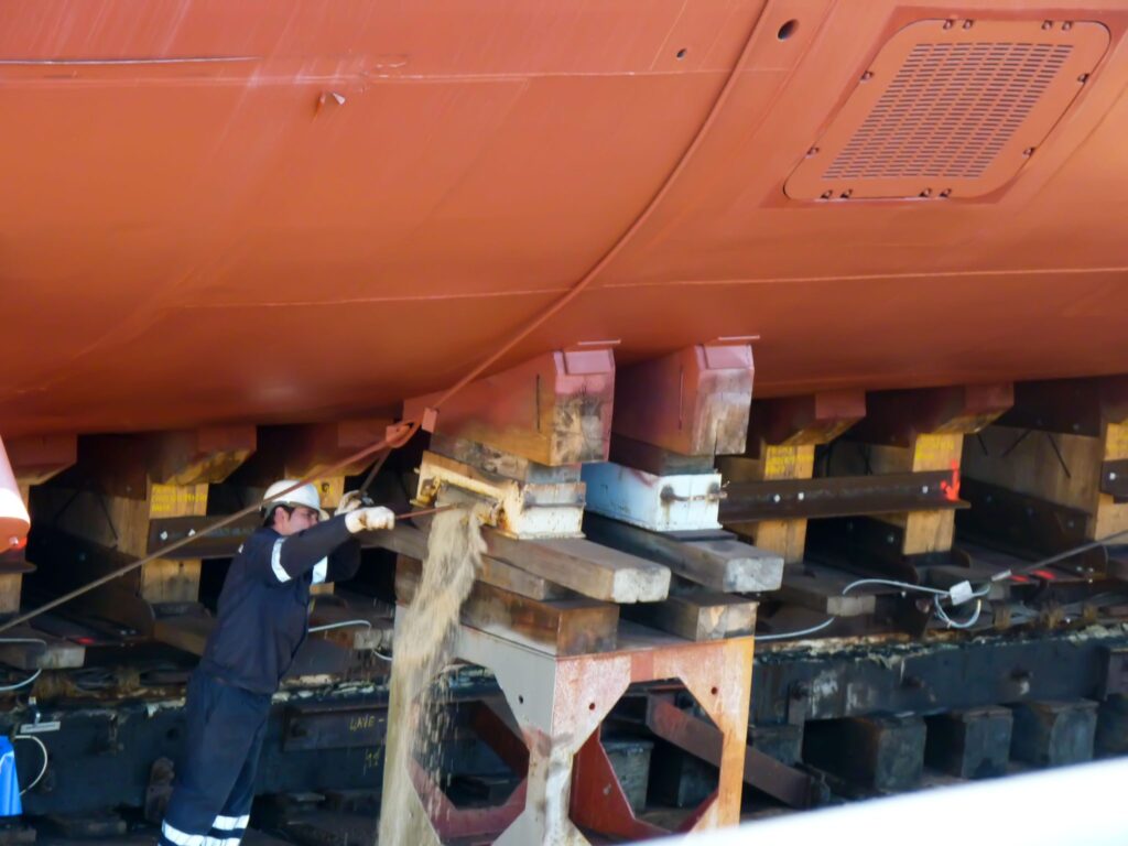 La semana pasada hablábamos de la importancia del patín para evitar los grandes rozamientos y la rotura del buque, pero existen otros dos elementos muy importantes en el lanzamiento: las cajas de arena, y las llaves de retención.