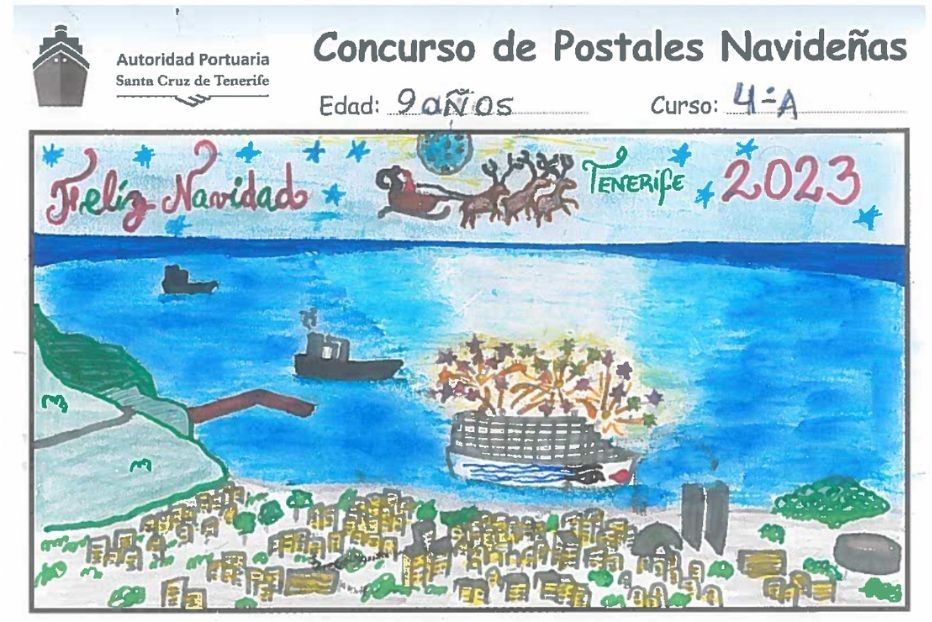 De las aproximadamente mil postales presentadas bajo el lema de La Navidad en el entorno portuario y marítimo procedentes de colegios de la provincia, resultaron ganadoras las de: