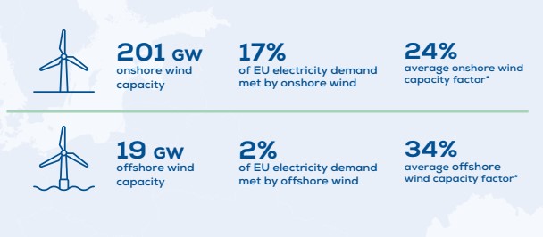 WindEurope prevé que la UE instalará una media de 29 GW al año entre 2024 y 2030. Esto elevará la capacidad eólica instalada de la UE a 393 GW en 2030, en comparación con los 425 GW necesarios para alcanzar los objetivos climáticos y energéticos de Europa.