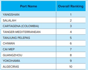 Este top mundial está encabezado por el puerto de Yangshan (China) seguido del puerto de Salalah (Omán) y el Puerto de Cartagena (Colombia).