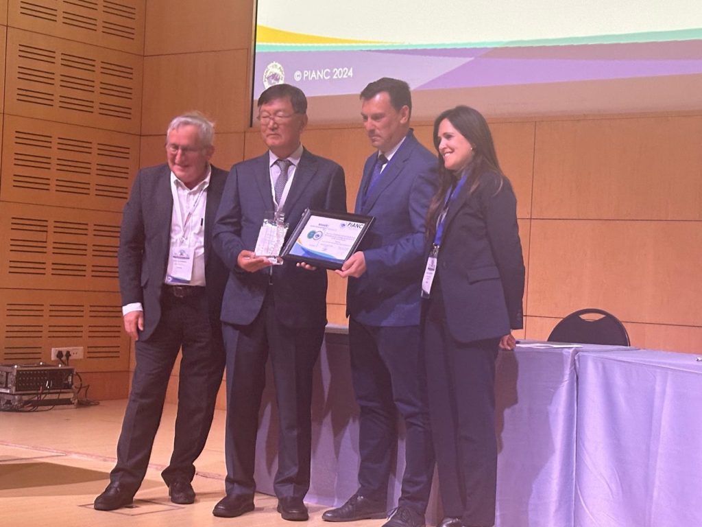 El galardón ha sido recogido hoy por el presidente del Puerto de Huelva, Alberto Santana, que ha acudido a la celebración del 35 Congreso Mundial de esta asociación, que se desarrolla en la ciudad de Cape Town (Sudáfrica), entre los días 29 de abril y 3 de mayo, enfocado a impulsar la sostenibilidad en el sector marítimo. El máximo representante del Puerto de Huelva ha estado acompañado por la jefa Departamento de Sostenibilidad y Transición Energética, Rocío López.