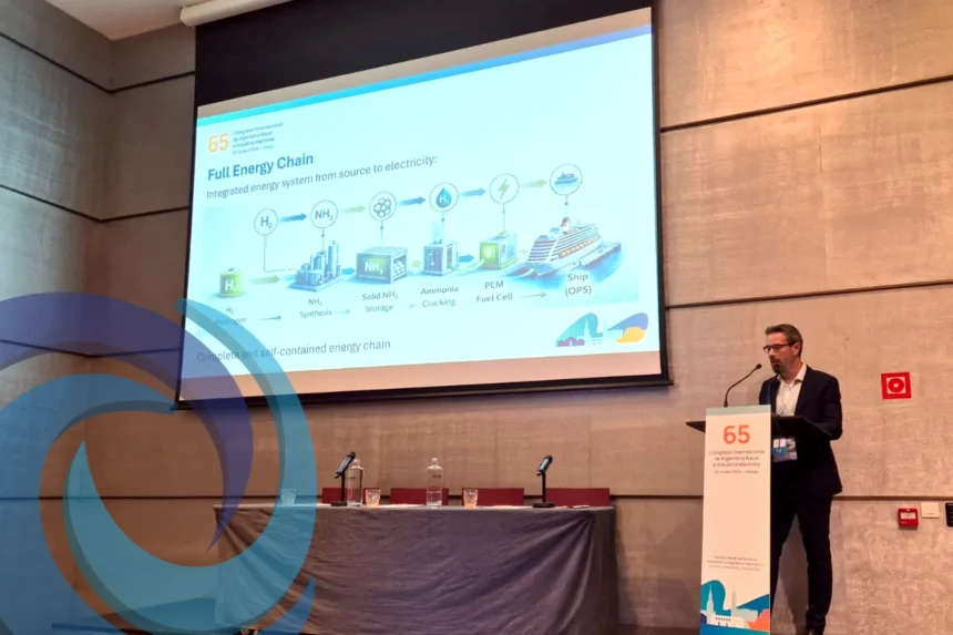 SOERMAR ha mostrado el potencial del amoniaco sólido como vector energético innovador para impulsar la descarbonización de puertos y astilleros. Un vector energético seguro, estable y con gran densidad de almacenamiento, adecuado para sistemas autónomos. Así lo expuso José Antonio Durango, ingeniero de proyectos de la entidad, durante una ponencia en el 65 Congreso Internacional de Ingeniería Naval e Industria Marítima, que se celebra en Málaga, en la que defendió la viabilidad de este sistema como base para soluciones de suministro eléctrico autónomo, flexibles y escalables en entornos marítimos.