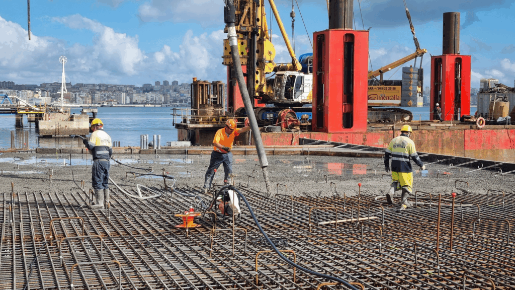 En estos momentos se está ejecutando el hormigonado de la primera fase del tablero que conforma el tacón sustentado por pilotes y se estima que los trabajos concluyan a finales de año, tal y como estaba previsto.